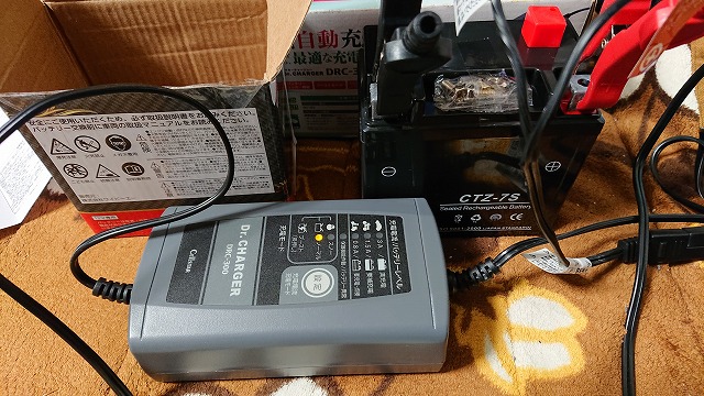 寒い-3℃二日乗ってない日の朝です、「ぐぷすん」あれ?もう一度「ううう」やばいですかからない、もう少し待ってから「ぐどどどど」ここですぐアクセル開けて無事始動、潔くバッテリ購入です速ポチ、到着の間アイドリングストップはしないようにOFFしてました4日後到着充電してみます