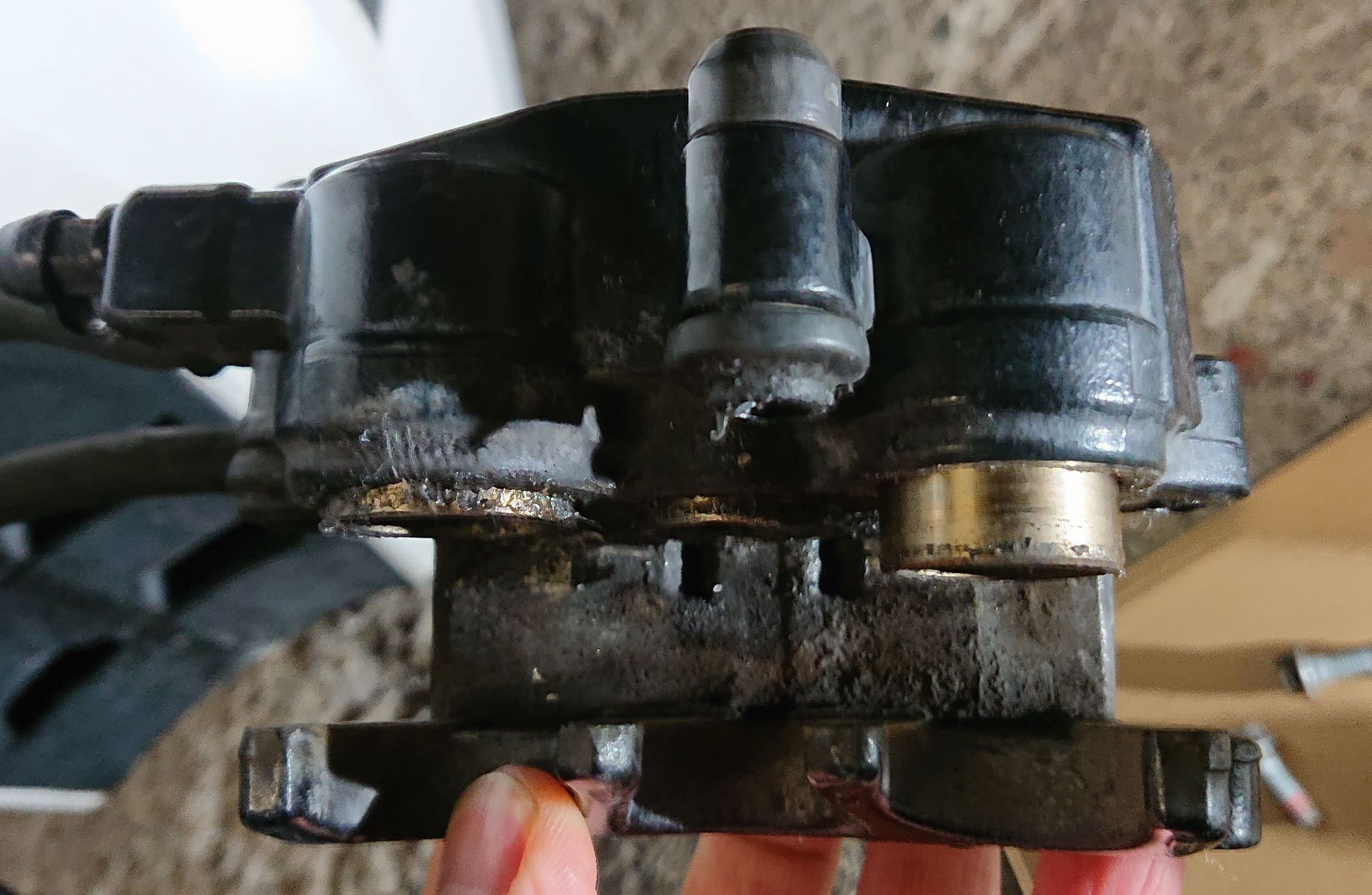ピストンをグリスアップしたりフルードのエア抜きシャフトの曲がり確認などしましたが改善されず、持ち上げて回すと半回転回りません