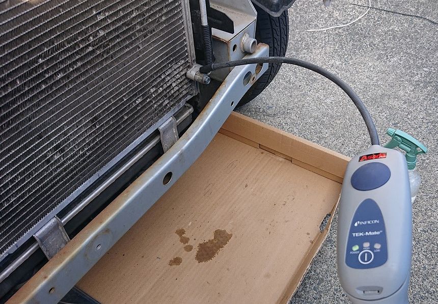 初めて、バンパー外した、まずはガス回収作業です450g回収した入れ過ぎてたな