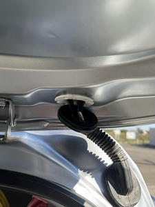 マット下スライドドア周辺を通って後ろまで来ました、穴無いかな探してメクラシールを発見ズボッと穴開けてリアタイヤハウスにまで来ました、後はバンパーの隙間からリアランプ迄到着です、貫通穴にはブッシングかましてコーキングで防水対策済み