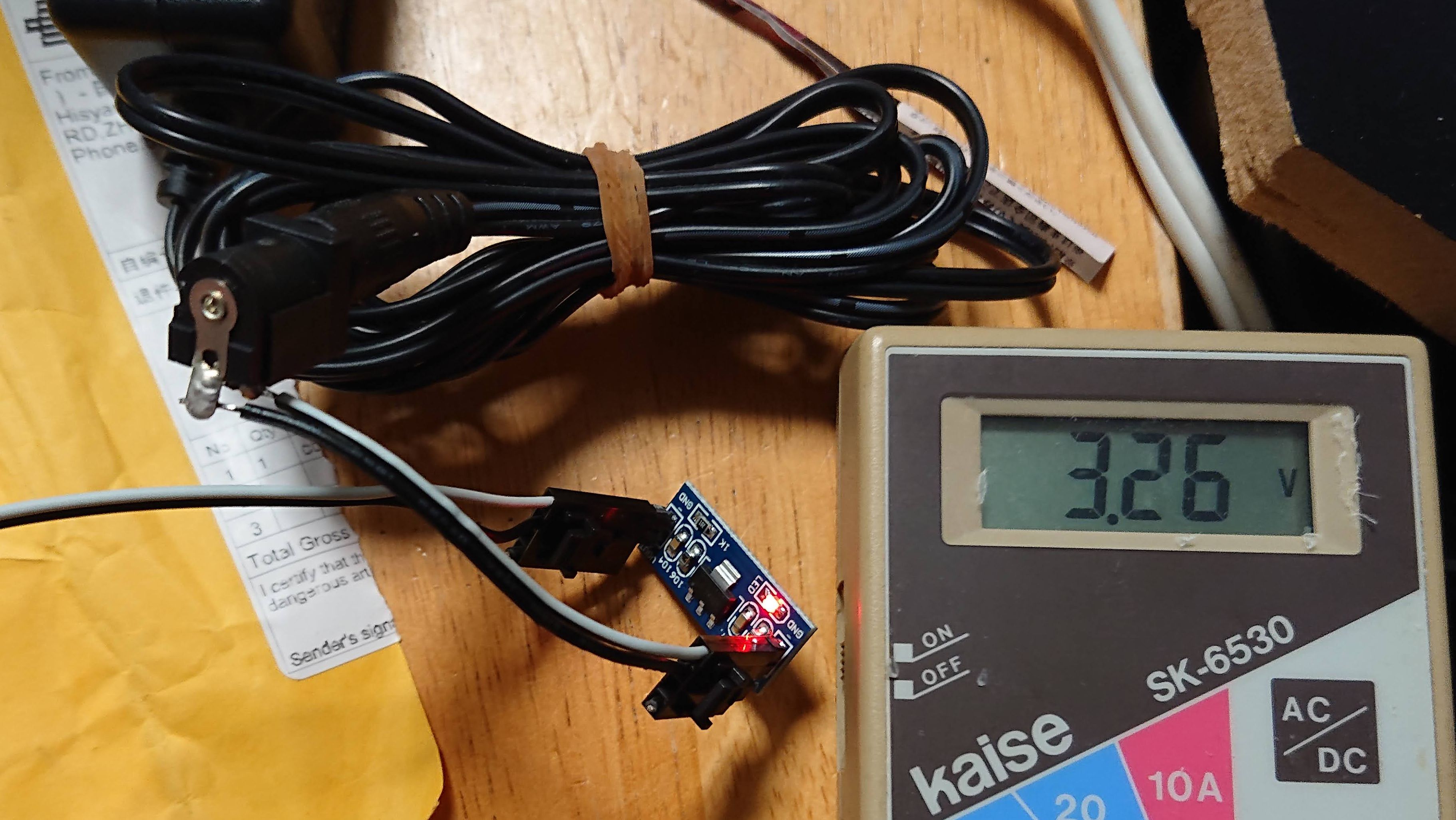 おおー見事に3Vに変圧出来ました、電圧ちょっと高いけど大丈夫でしょ?
