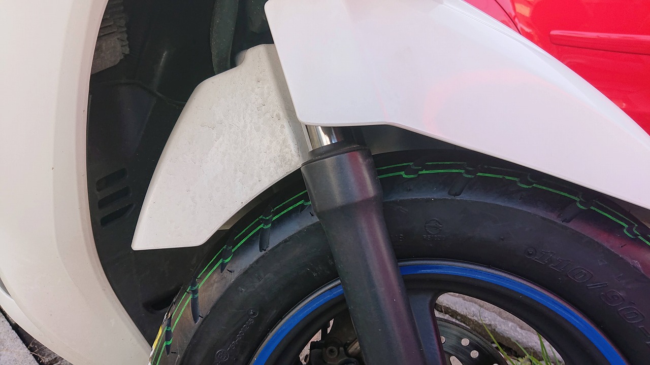 これで前後110幅で太くなりました、乗り心地UPすると良いな