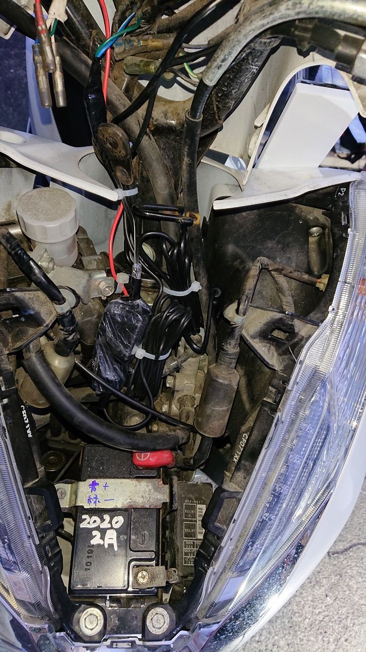 配線完了です、シガーソケット部はラップを巻いて防水処理