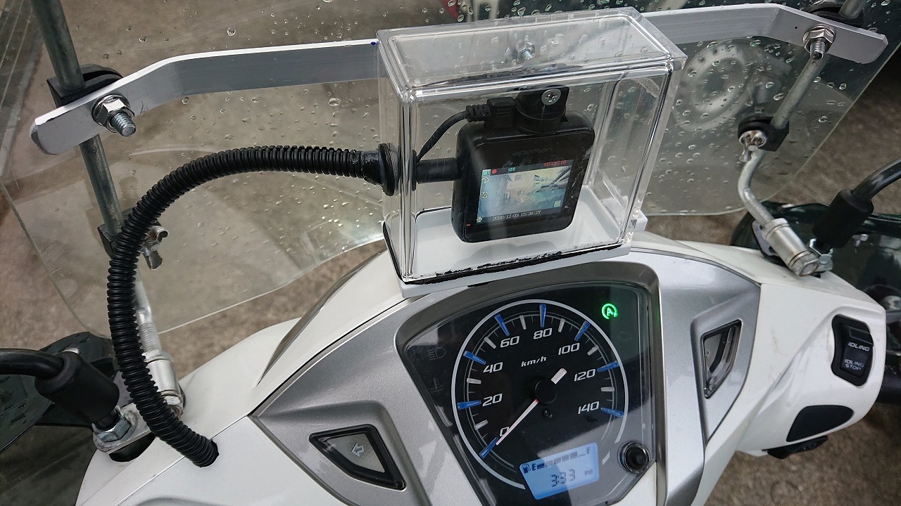 先日、妻の車が事故にあいドライブレコーダーのおかげで3:7が1:9になり元を取ったのでバイク号にも付けようと思った次第です、