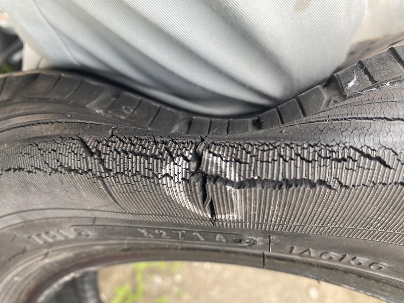 リヤタイヤパンクですね、粛々とスペアに積んであるのと交換開始です