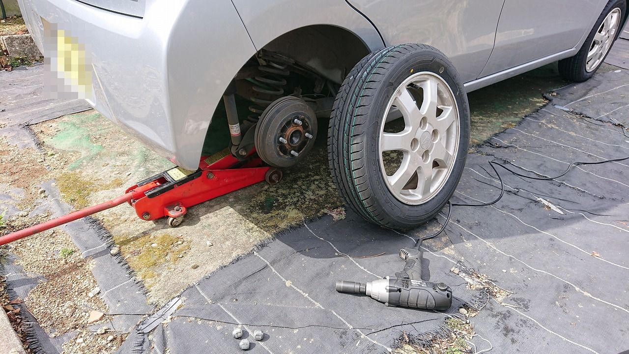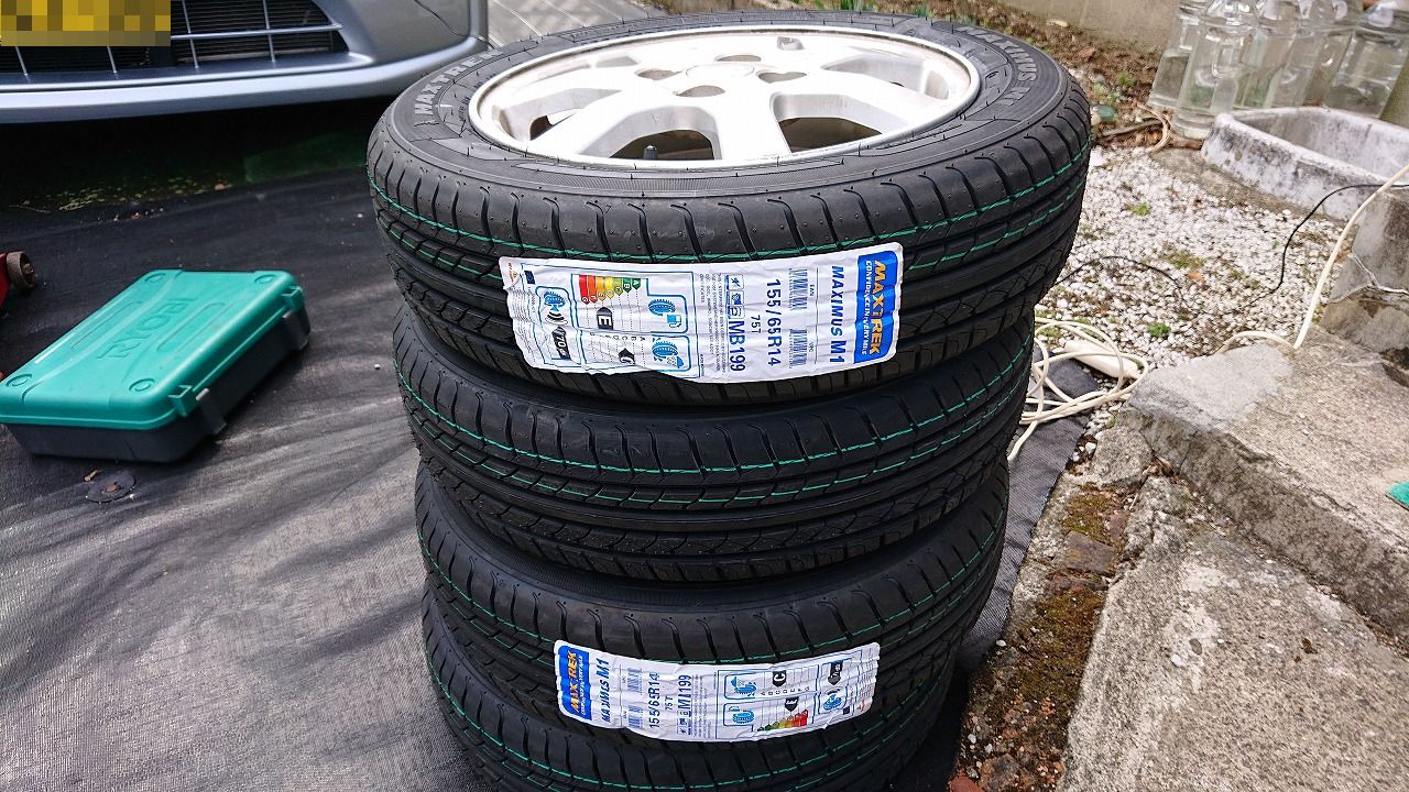 父の車はムーブです、7年は乗ったでしょう、あまり乗らないのかして夏タイヤは純正のハンコックをまだ履いてます、山はあるがヒビすごいので交換です