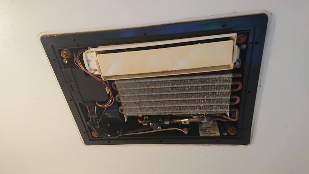ネジ4か所外してカバーを下ろします、内部は15年未清掃です、悪臭がします